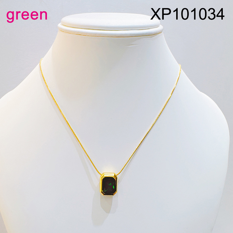 Level B Stainless Steel New Trendy Women Jewelry Rectangle Green Glass zirconium Golden Pendant