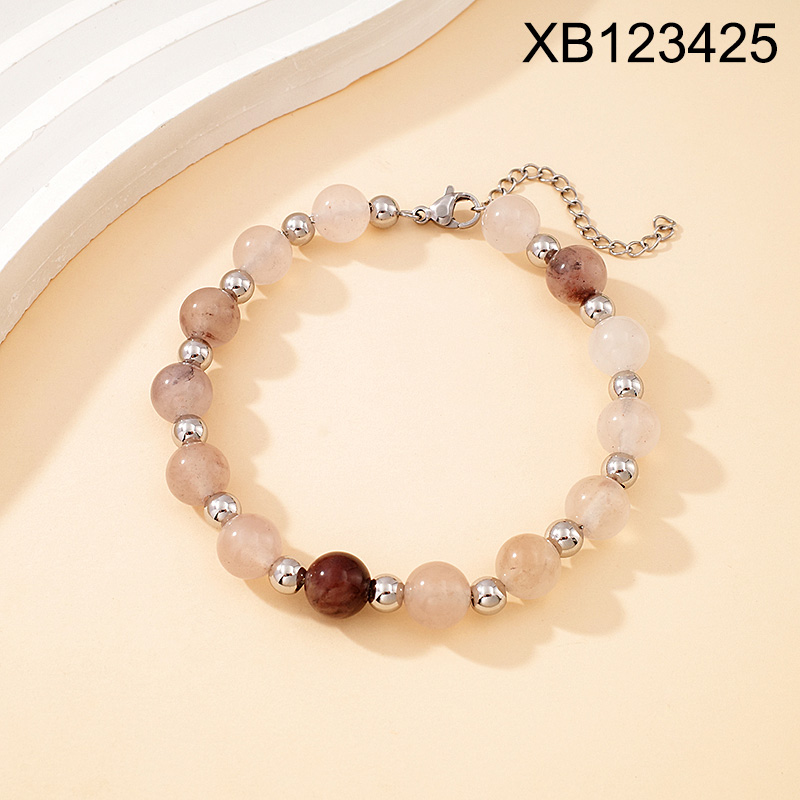 Home > Level B Stainless Steel New Trendy Women Jewelry Natural Stone Steel color Chain Bracelet