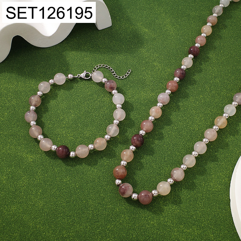 Home > Level B Stainless Steel New Trendy Women Jewelry Natural Stone Steel color Chain SET