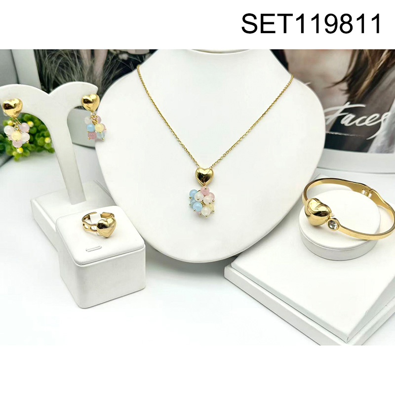 Level B Stainless Steel New Trendy Women Jewelry Golden 4pcs SET