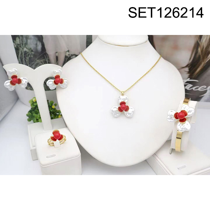 Level B Stainless Steel New Trendy Women Jewelry Flower Golden 4pcs SET