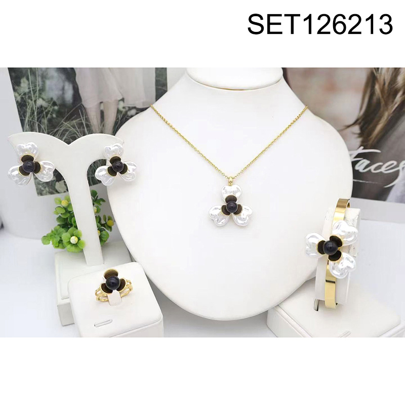 Level B Stainless Steel New Trendy Women Jewelry Flower Golden 4pcs SET