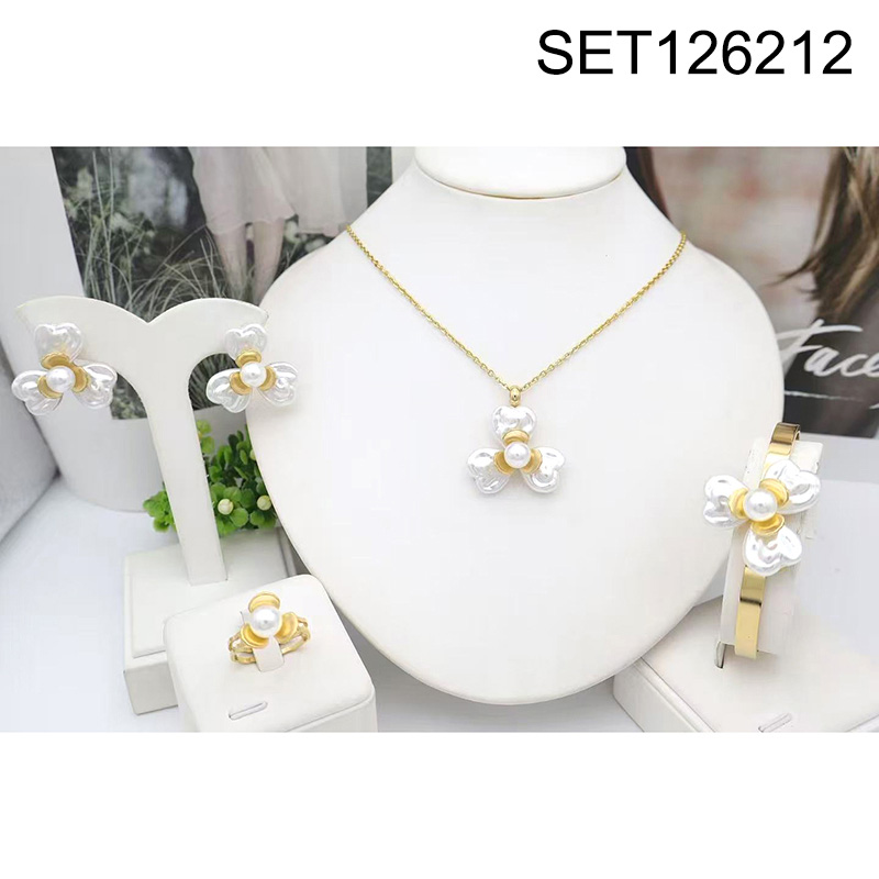 Level B Stainless Steel New Trendy Women Jewelry Flower Golden 4pcs SET