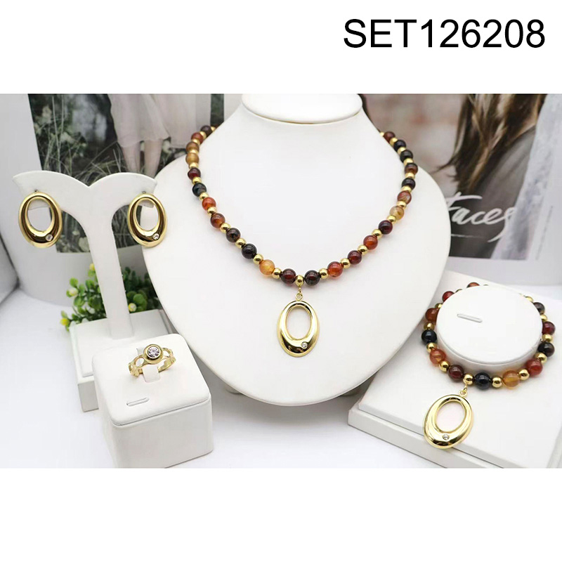 Level B Stainless Steel New Trendy Women Jewelry Oval Golden 4pcs SET