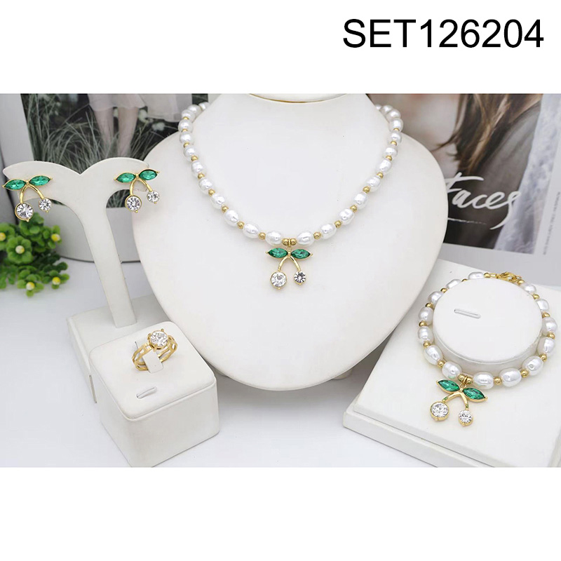 Level B Stainless Steel New Trendy Women Jewelry Pearl Style/Plastic Beads Summer fruit style Cherry Golden 4pcs SET