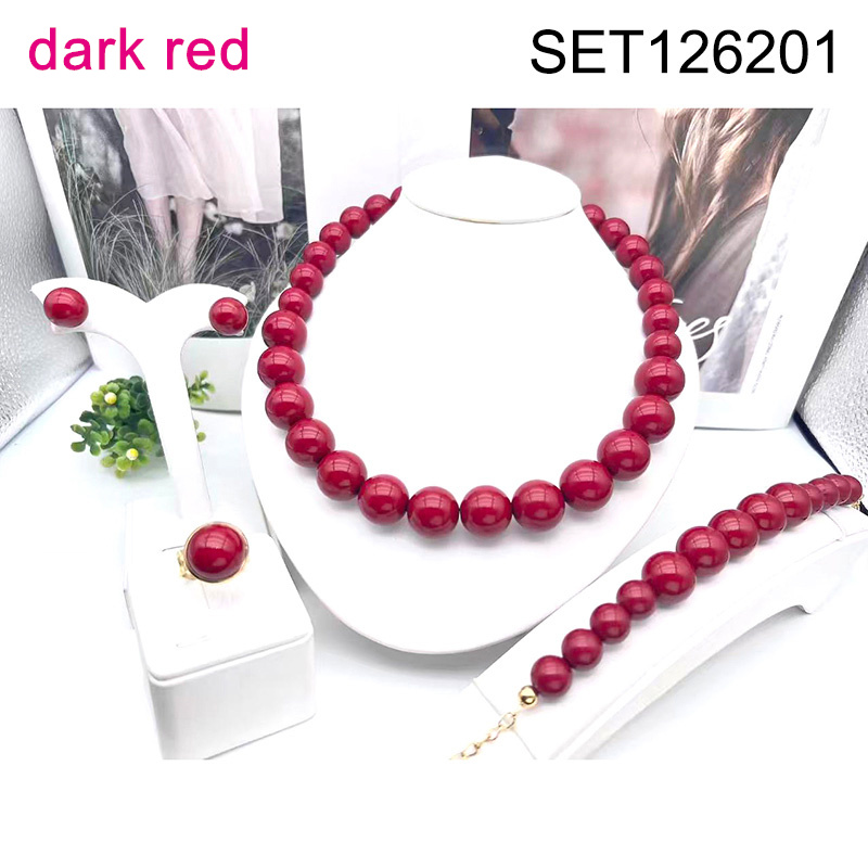 Level B Stainless Steel New Trendy Women Jewelry Pearl Style/Dark red Plastic Beads Golden 4pcs SET