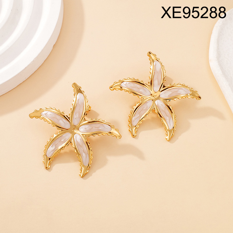 Home > Level B Stainless Steel New Trendy Women Jewelry Drip Oil/Enamel Flower Golden Earrings