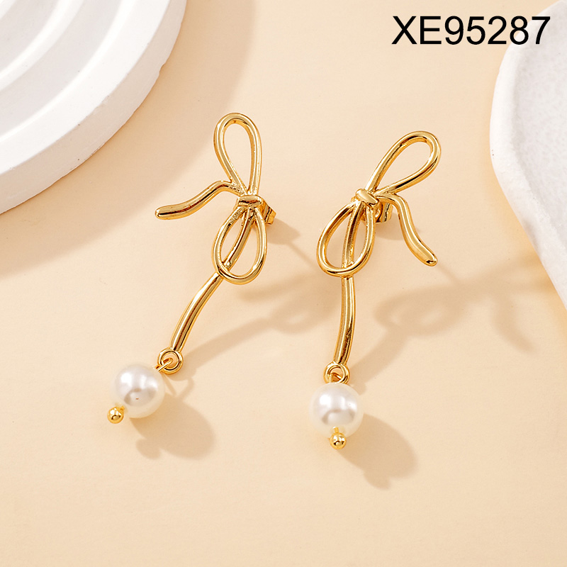 Level B Stainless Steel New Trendy Women Jewelry Pearl Style/Plastic Beads Bowknot Golden Earrings