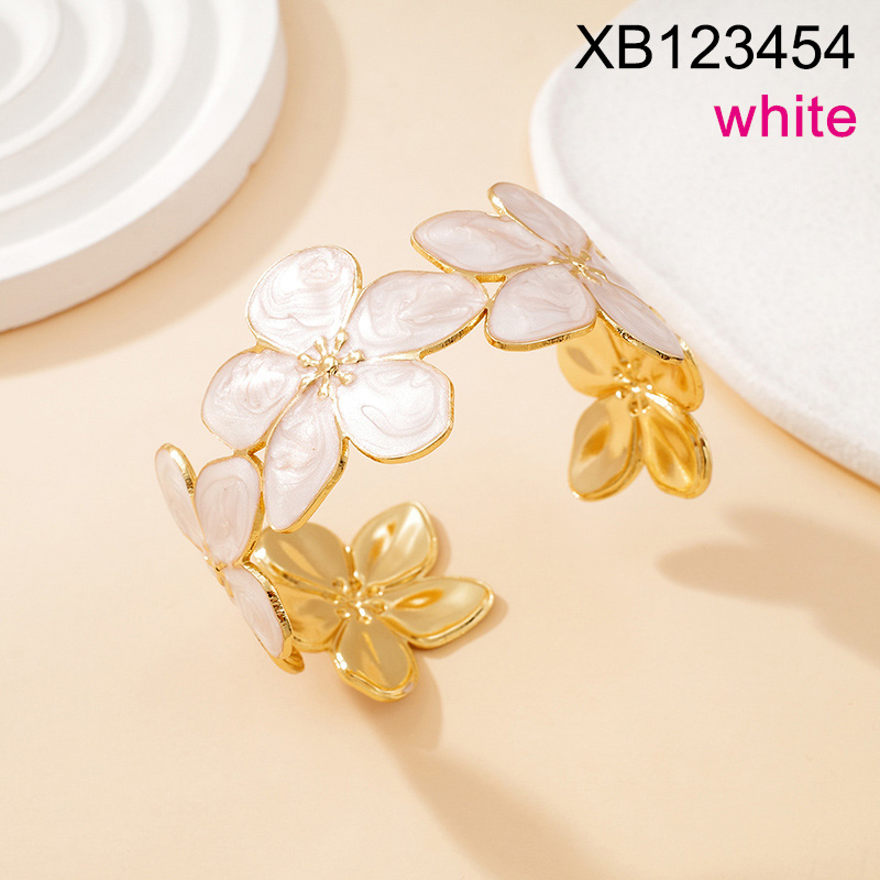 Level C Stainless Steel New Trendy Women Jewelry Drip Oil/Enamel Flower Golden Open Bangle;Bangle size can be adjusted freely