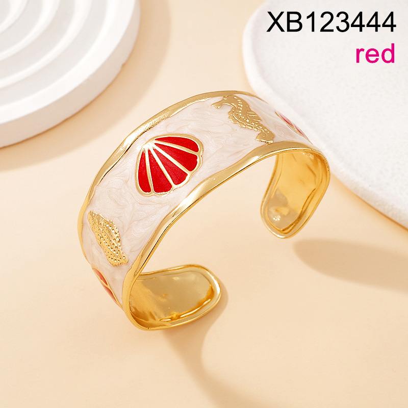 Level C Stainless Steel New Trendy Women Jewelry Drip Oil/Enamel Summer beach Animal Shell Conch Seahorse Golden Open Bangle;Bangle size can be adjusted freely