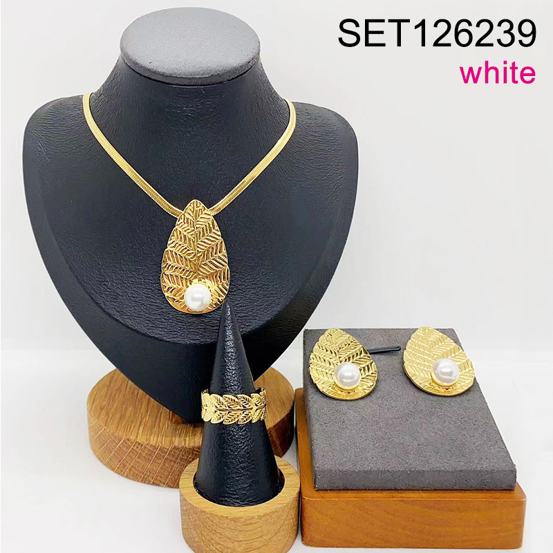 Level B Stainless Steel New Trendy Women Jewelry Pearl Style/White Plastic Beads Water Drip Golden 3pcs SET