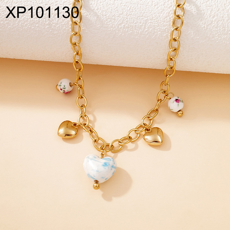 Level B Stainless Steel New Trendy Women Jewelry Heart Golden Chain Valentine's Day Pendant