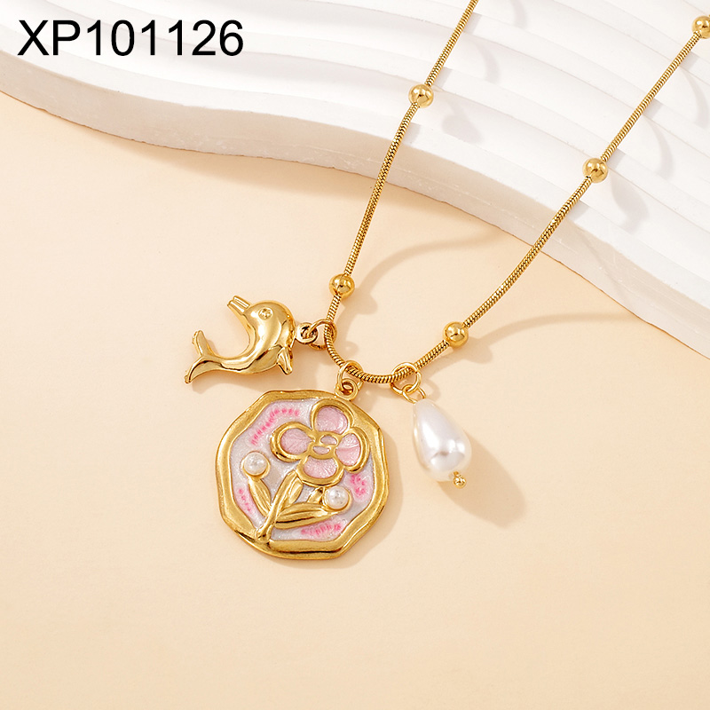 Level B Stainless Steel New Trendy Women Jewelry Pearl Style/Plastic Beads Summer beach Animal Dolphin Flower Golden Pendant