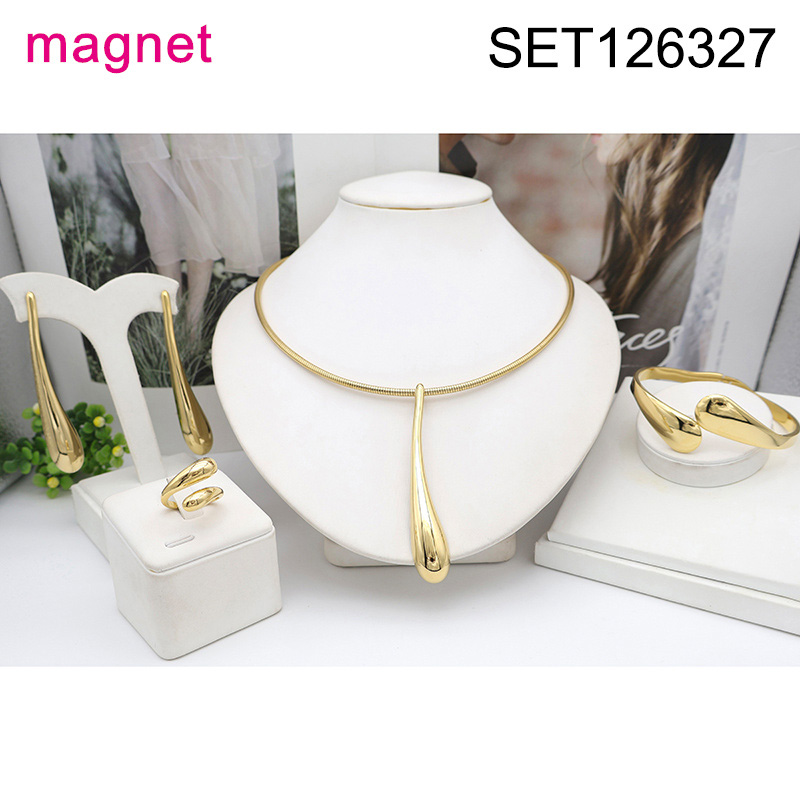 Level B Stainless Steel New Trendy Women Jewelry Water Drip Golden Magnet buckle 4pcs SET