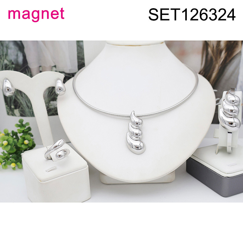 Level B Stainless Steel New Trendy Women Jewelry Water Drip Steel color Magnet buckle 4pcs SET