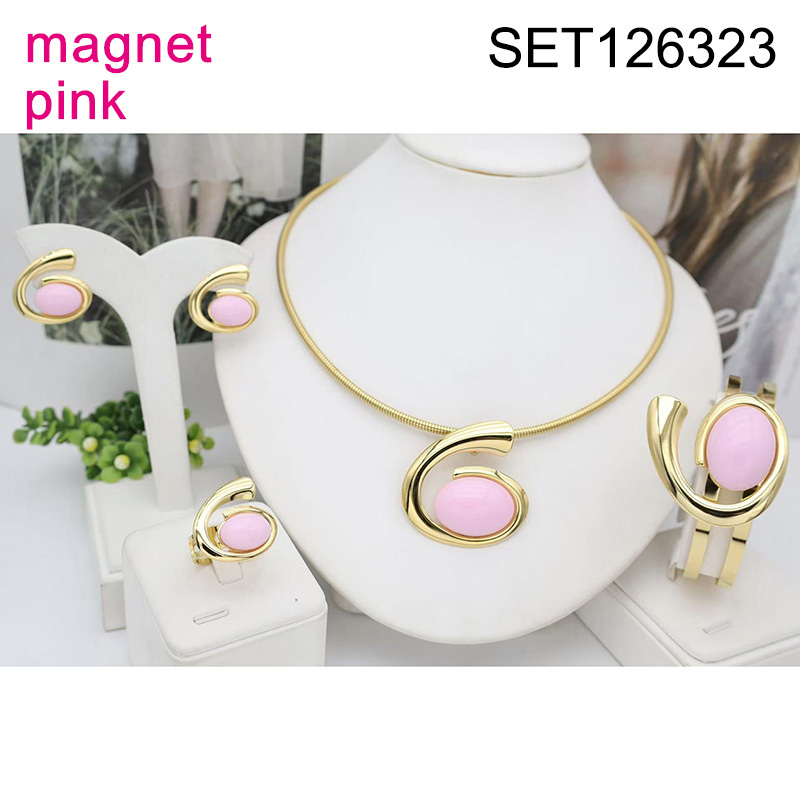 Level B Stainless Steel New Trendy Women Jewelry Oval Pink Opal Stone Golden Magnet buckle 4pcs SET