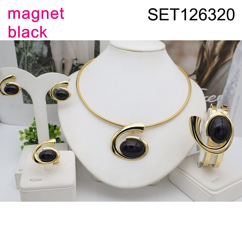 Home > Level B Stainless Steel New Trendy Women Jewelry Oval Black Opal Stone Golden Magnet buckle 4pcs SET