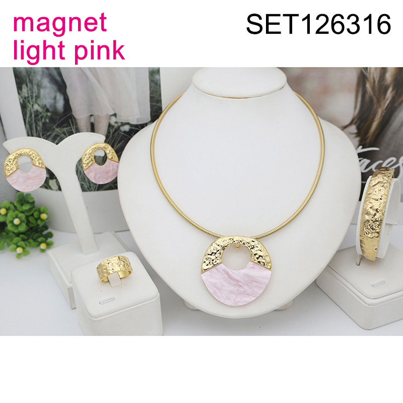 Level B Stainless Steel New Trendy Women Jewelry Light pink Round Golden Magnet buckle 4pcs SET