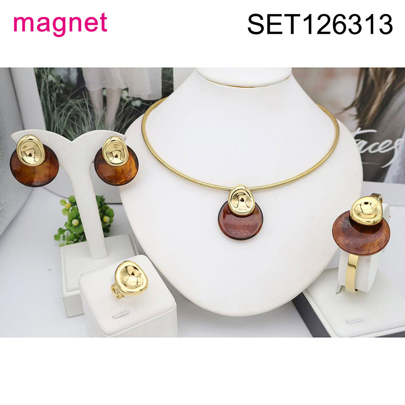 Level B Stainless Steel New Trendy Women Jewelry Round Oval Golden Magnet buckle 4pcs SET