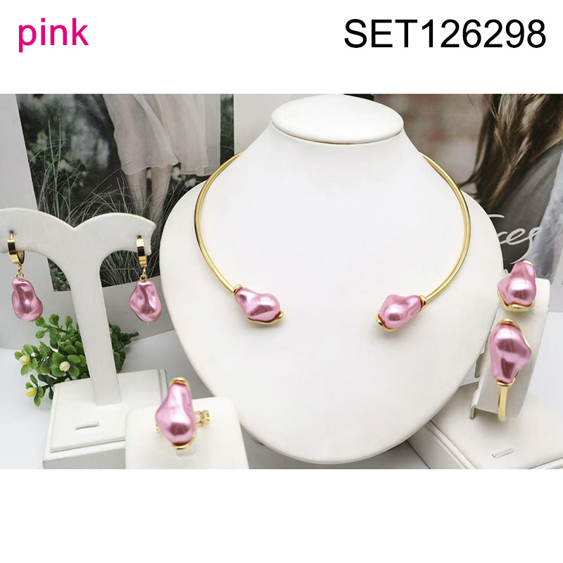 Level B Stainless Steel New Trendy Women Jewelry Pearl Style/Pink Plastic Beads Golden 4pcs SET