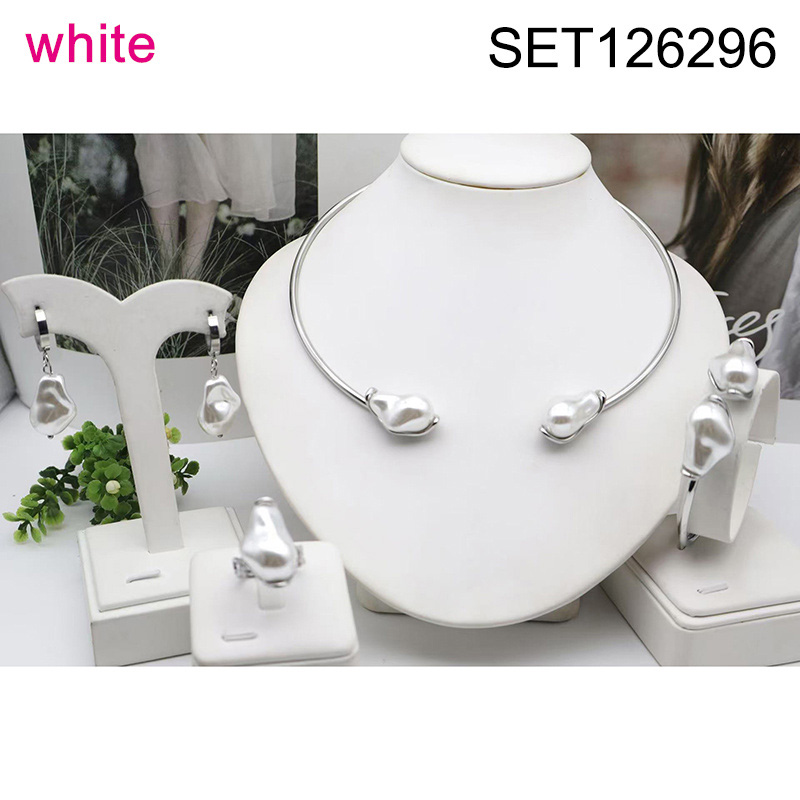 Level B Stainless Steel New Trendy Women Jewelry Pearl Style/White Plastic Beads Steel color 4pcs SET