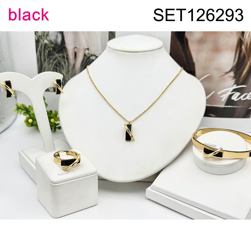 Level B Stainless Steel New Trendy Women Jewelry Clay Sticky Black Rhinestone Golden 4pcs SET