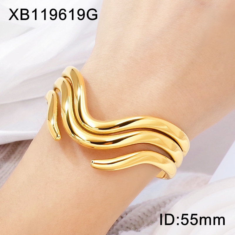 Level A Stainless Steel New Trendy Women Jewelry Golden Open Bangle;Bangle size can be adjusted freely