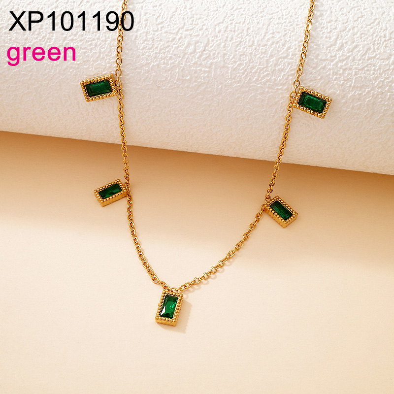 Level B Stainless Steel New Trendy Women Jewelry Rectangle Green Crystal zirconium Golden Pendant
