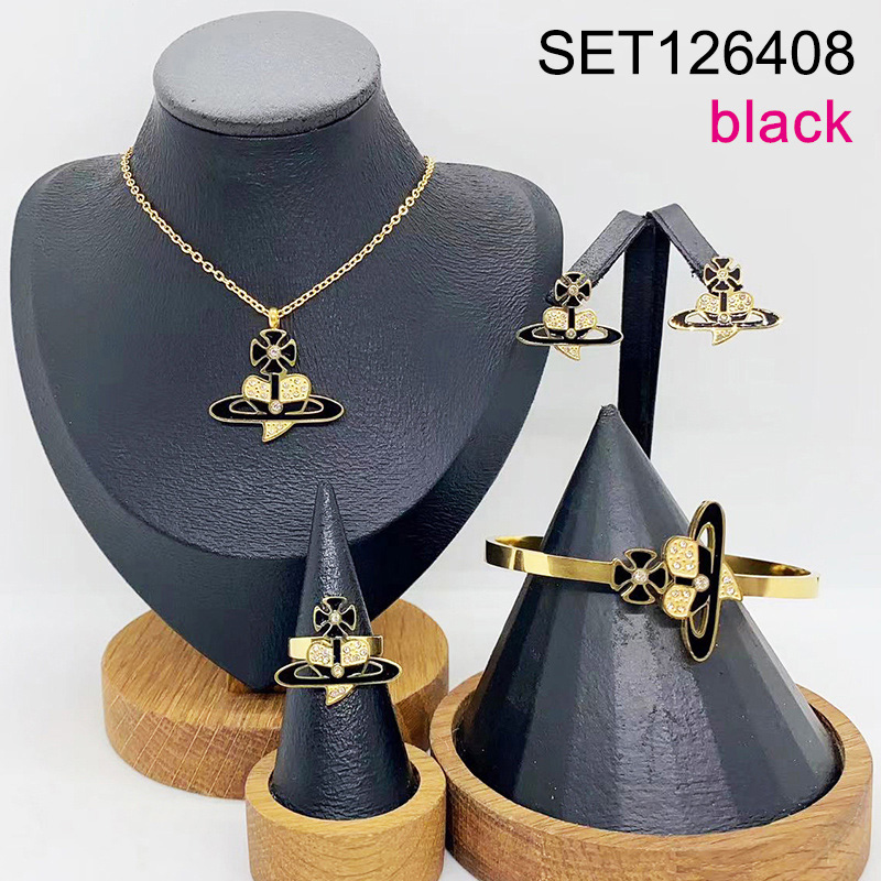 Level B Stainless Steel New Trendy Women Jewelry Drip Oil/Enamel Black Heart Golden 4pcs SET