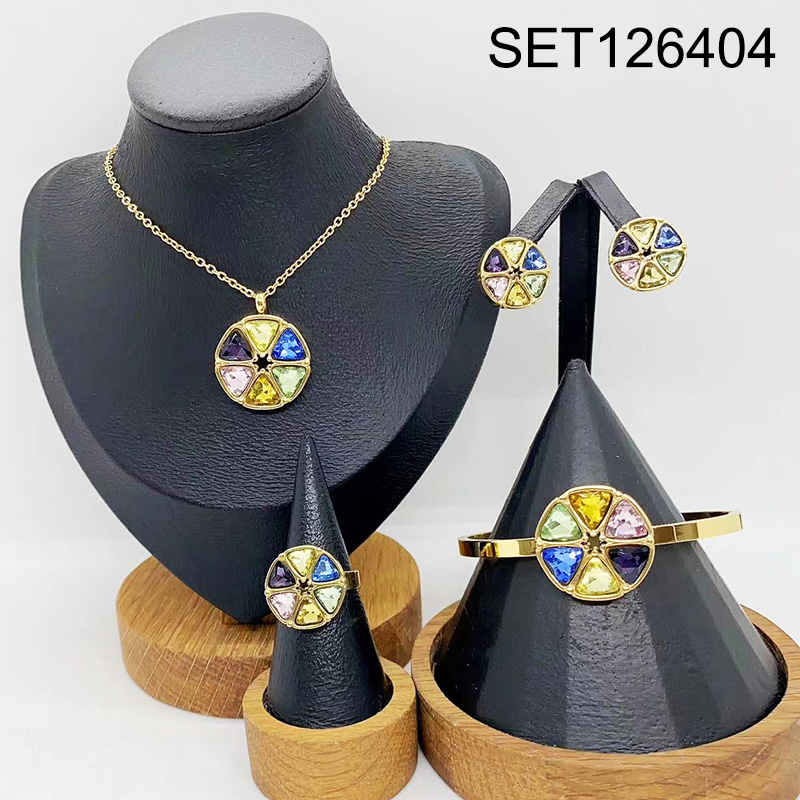 Home > Level B Stainless Steel New Trendy Women Jewelry Triangle Glass Golden 4pcs SET