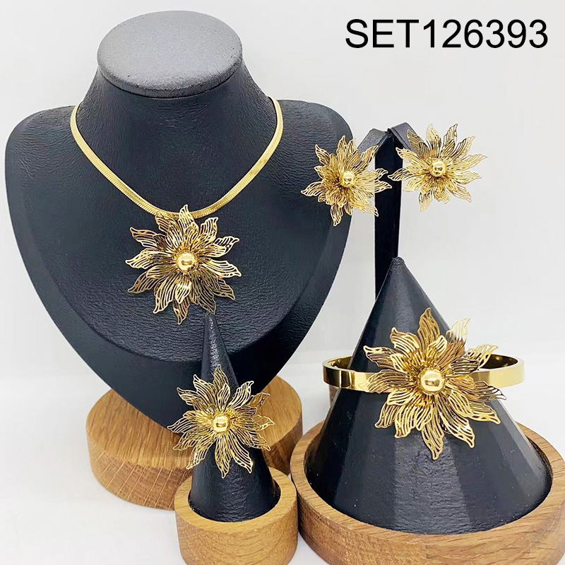 Level B Stainless Steel New Trendy Women Jewelry Flower Golden 4pcs SET