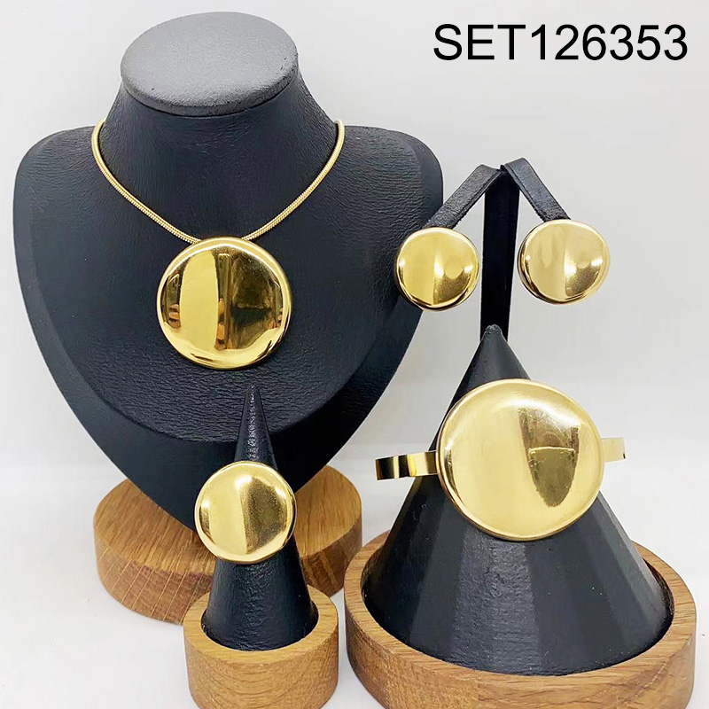 Level B Stainless Steel New Trendy Women Jewelry Round Golden 4pcs SET