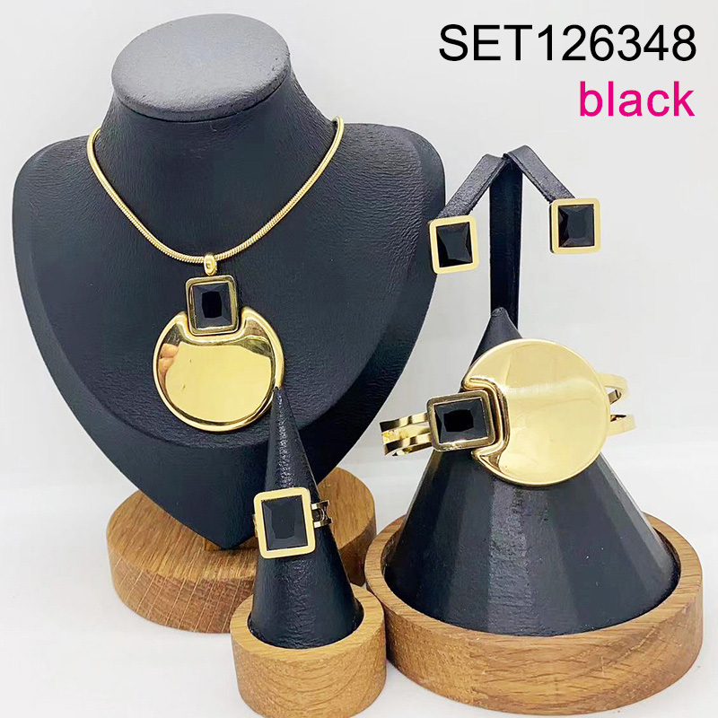 Home > Level B Stainless Steel New Trendy Women Jewelry Round Rectangle Black Stone Golden 4pcs SET