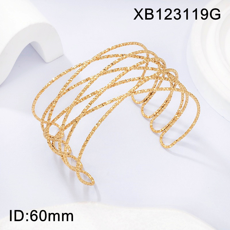 Level A Stainless Steel New Trendy Women Jewelry Golden Open Bangle;Bangle size can be adjusted freely