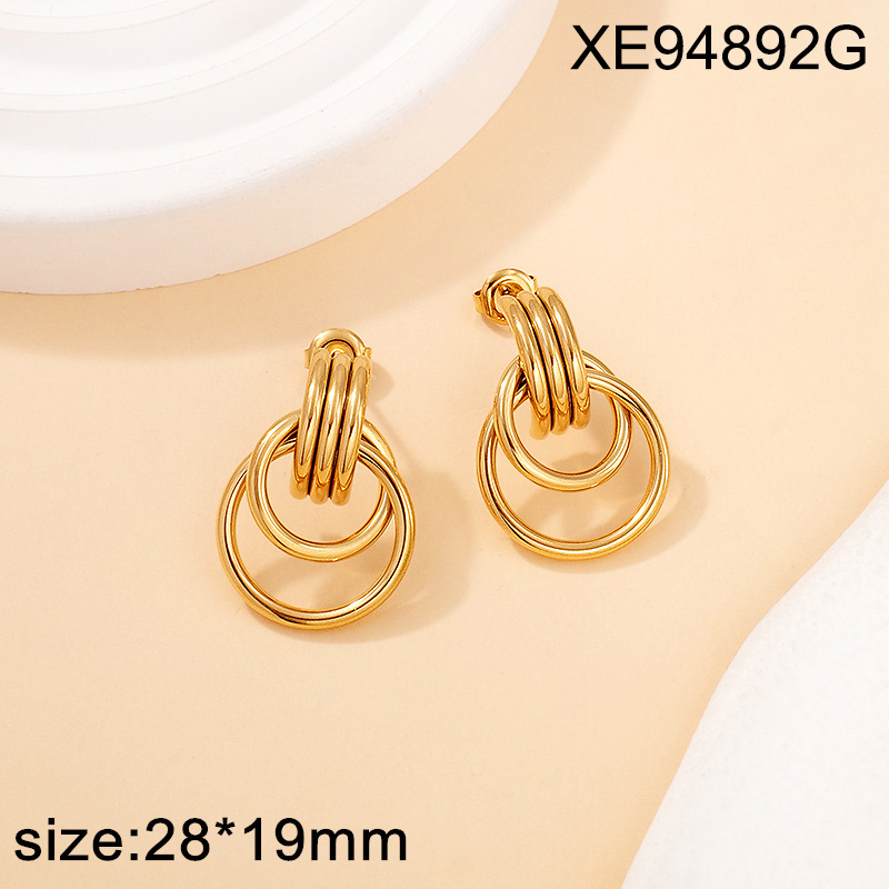 Level A Stainless Steel New Trendy Women Jewelry Golden Double circular ring overlapping pattern Earrings