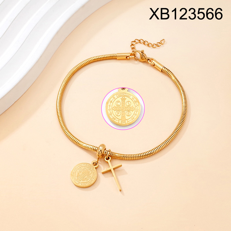 Level B Stainless Steel New Trendy Women Jewelry Religion Cross Golden Bracelet