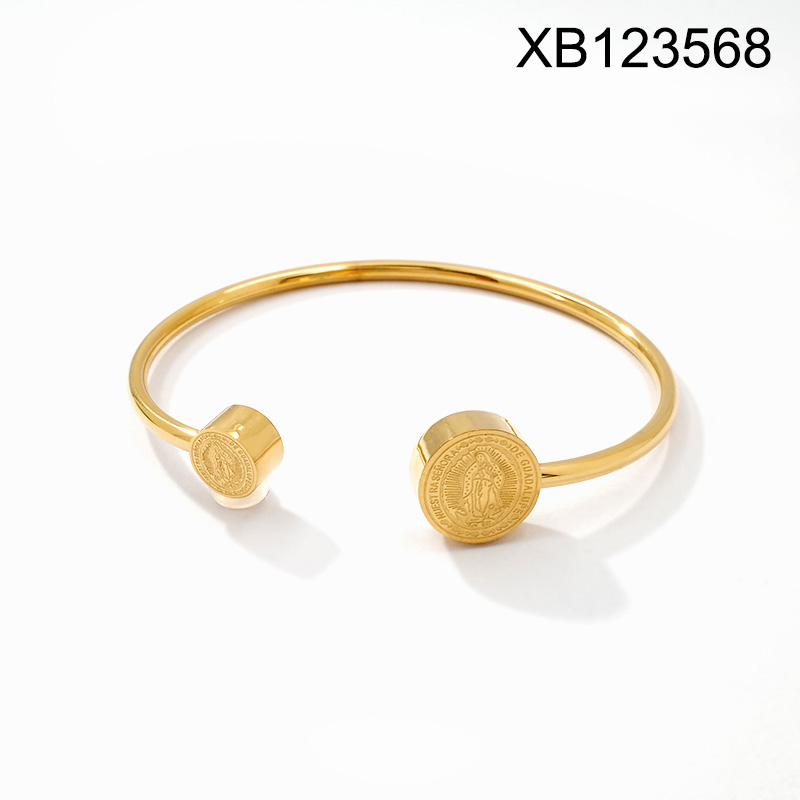 Level B Stainless Steel New Trendy Women Jewelry Religion Golden Open Bangle;Bangle size can be adjusted freely