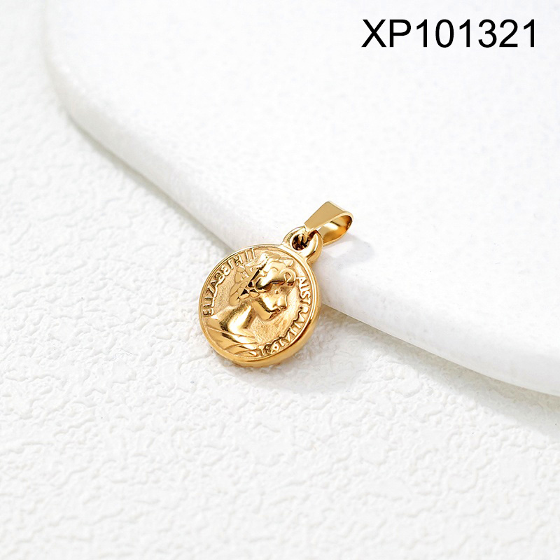 Home > Level B Stainless Steel New Trendy Women Jewelry People Coin Golden Pendant