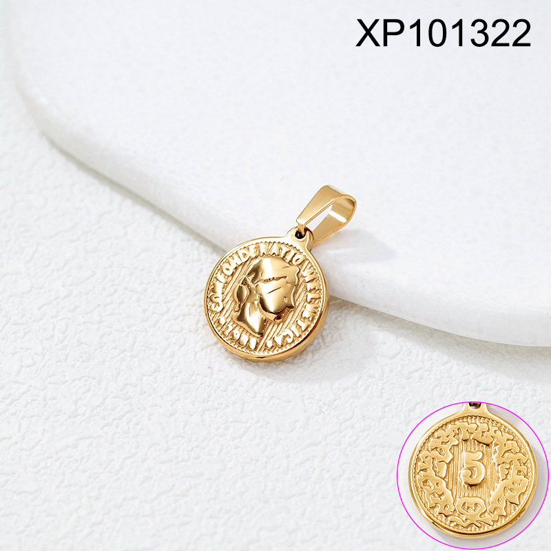 Level B Stainless Steel New Trendy Women Jewelry People Coin Golden Pendant