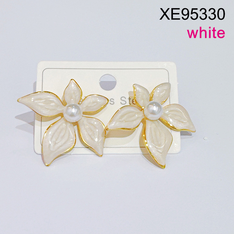 Level C Stainless Steel New Trendy Women Jewelry Pearl Style/Plastic Beads Drip Oil/Enamel White Flower Golden Earrings