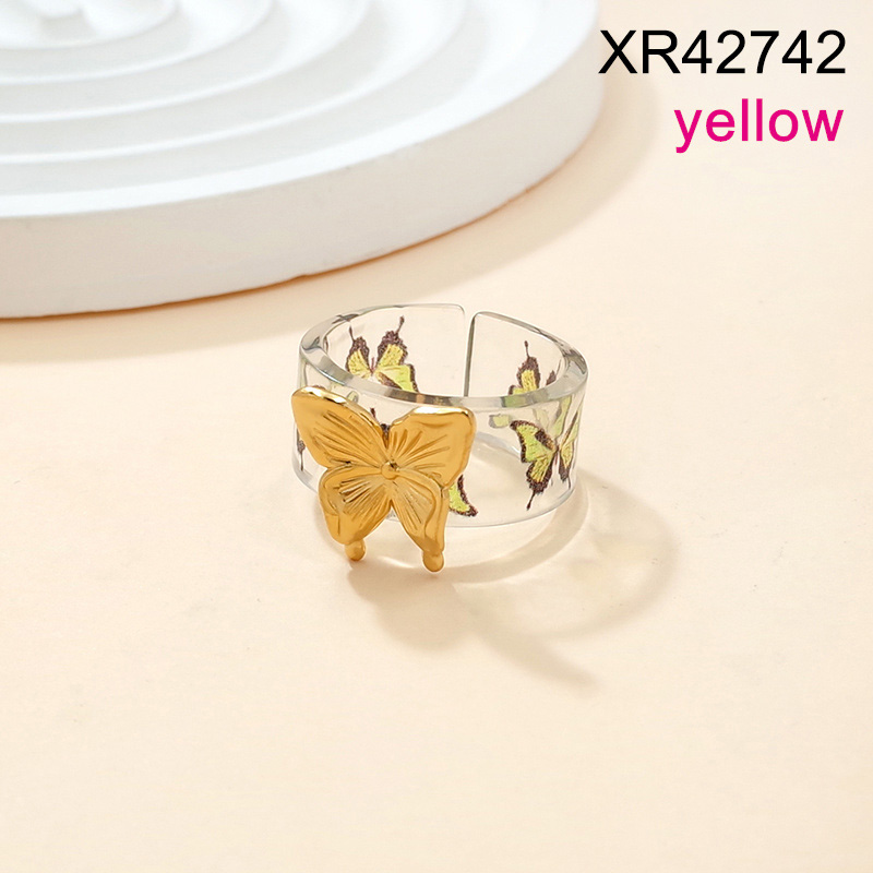 Level B Stainless Steel New Trendy Women Jewelry Animal Yellow Butterfly Golden Open Rings;Ring size can be adjusted freely