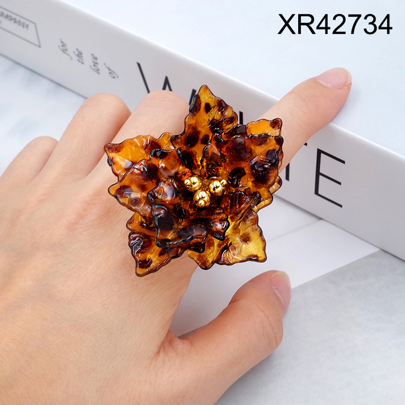 Level B Stainless Steel New Trendy Women Jewelry Flower Golden Open Rings;Ring size can be adjusted freely