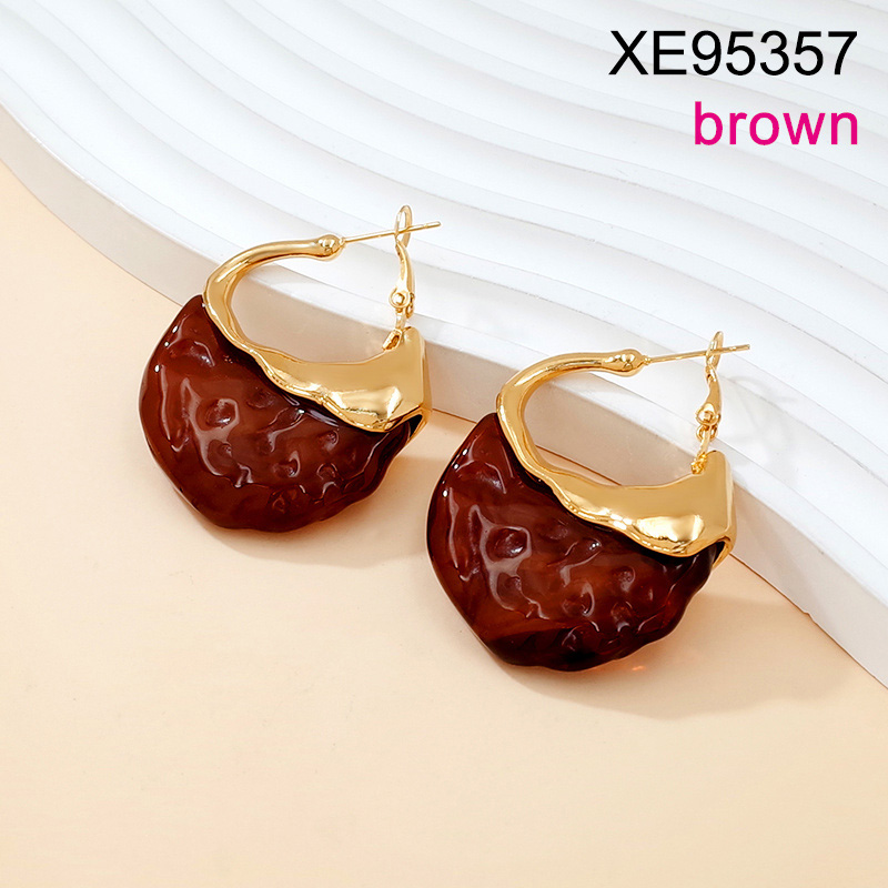 Level B Stainless Steel New Trendy Women Jewelry Brown Resin Golden Earrings