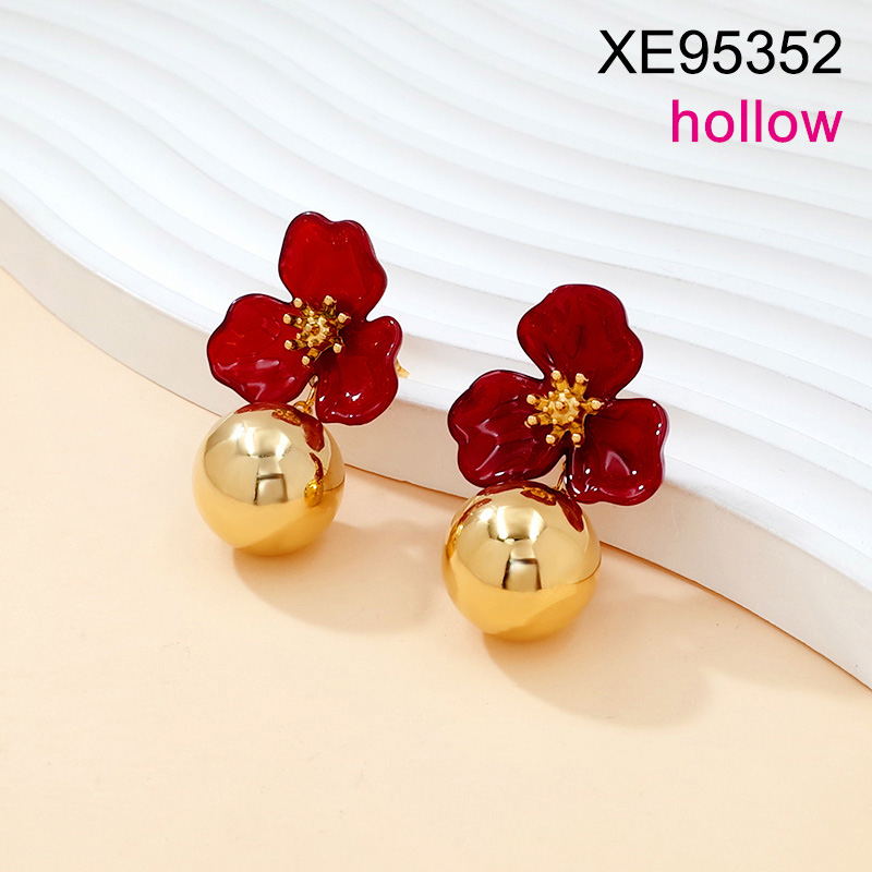 Home > Level B Stainless Steel New Trendy Women Jewelry Flower Hollow Round Beads Golden Earrings