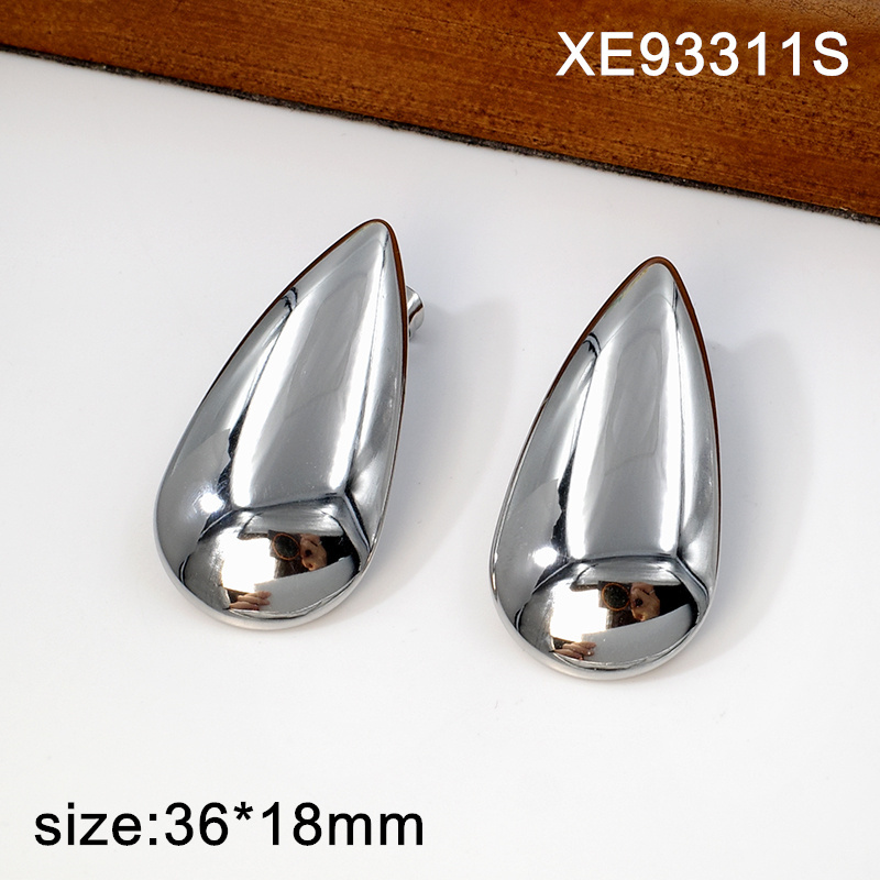 Level A Stainless Steel New Trendy Women Jewelry Water Drip Shape Steel color Earrings
