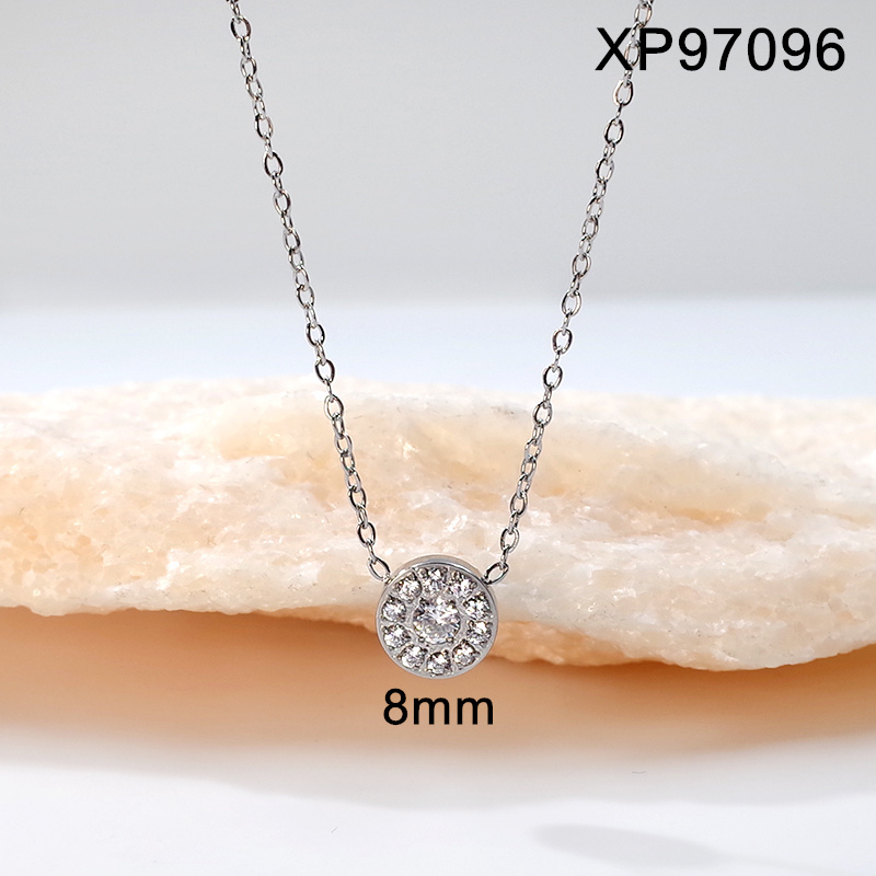 Home > Level A Stainless Steel New Trendy Women Jewelry Lnlaid Stone Round Steel color CNC Pendant