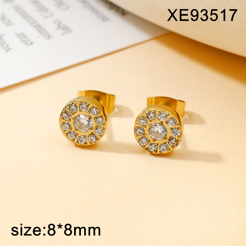 Level A Stainless Steel New Trendy Women Jewelry Lnlaid Stone Round Golden CNC Earrings
