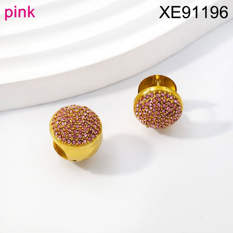 Home > Level B Stainless Steel SET Jewelry New Trendy Round Pink Diamond Golden Earring