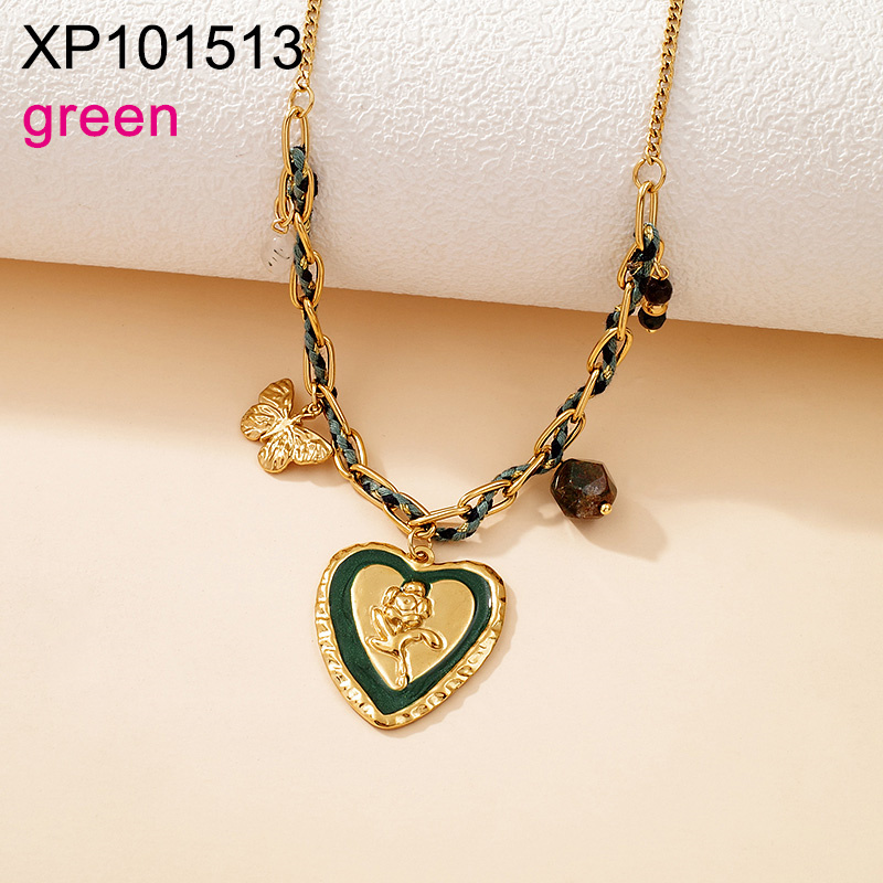 Level B Stainless Steel New Trendy Women Jewelry Drip Oil/Enamel Green Heart Golden Pendant