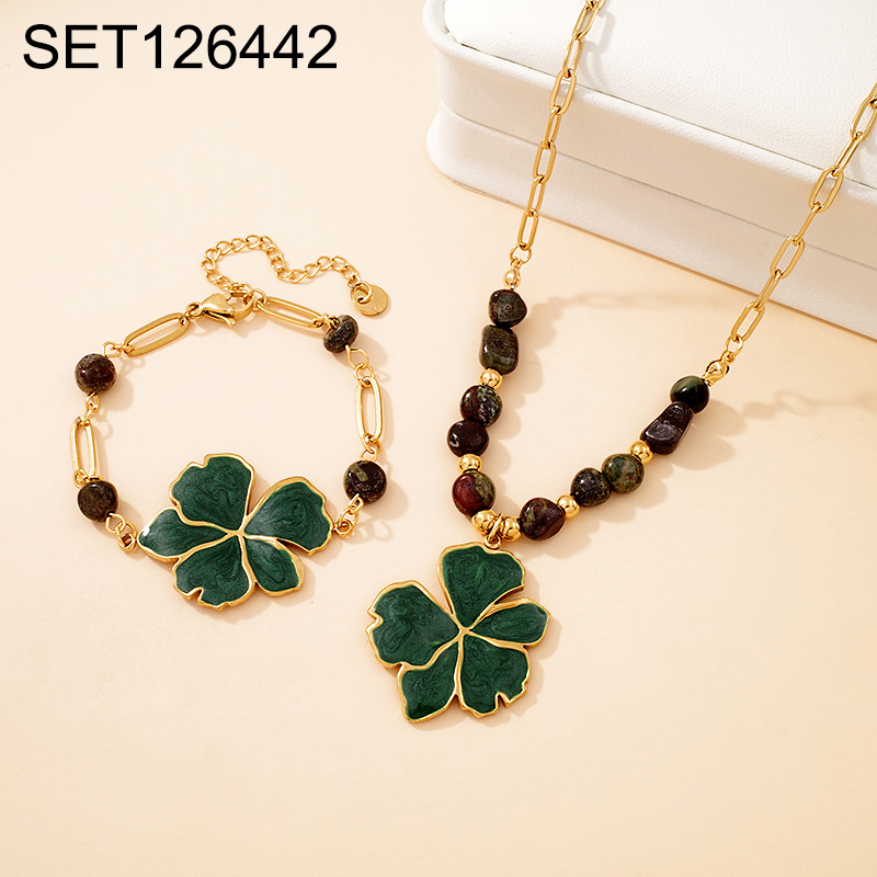 Level B Stainless Steel New Trendy Women Jewelry Drip Oil/Enamel Flower Golden Chain SET